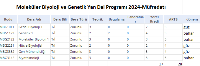 YAN DAL programımıza kayıt yaptıran öğrencilerin aşağıdaki tabloda belirtilen öğretim planına ait derslerden başarılı olması üzerine "YAN DAL Sertifikası" almaya hak kazanacaktır.